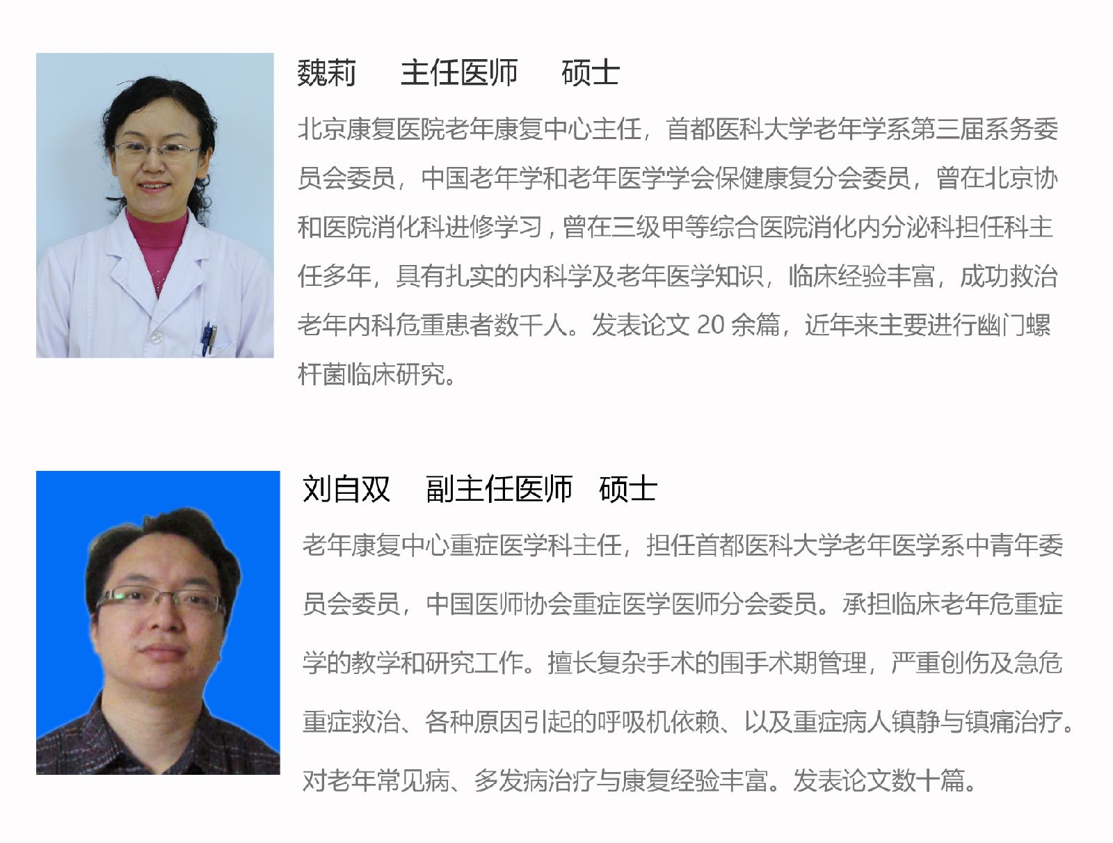 4.老年综合评估中心:我科是石景山区唯一一家老年综合评估培训基地,应用生物-心理-社会-环境的医学模式全面了解老年人的健康状况(尤其是各种功能状况),尽可能使老年患者保持健康或使其功能恢复独立性,从而提高老年人的健康期望寿命和生命质量。