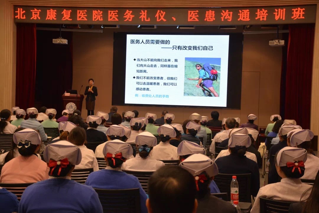 2月26日、27日下午,劳模健康管理中心在行政楼报告厅举办了“医护礼仪、医患沟通培训班“,邀请到高级礼仪培训讲师孙志凌为全院医护人员进行培训。北京健康管理协会常务副主任杜兵、院长席家宁、党委书记舒岩、医学院副院长公维军、护理部主任滕立英、医务部副主任郗海涛出席,院党委副书记盖海山主持。