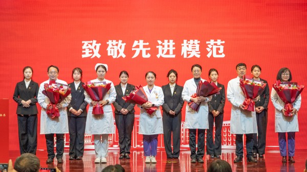 大会特设“传承匠心 礼赞模范”环节,向为医院发展作出贡献的前辈致敬。金大鹏、吕厚山两位老领导登台接受致敬,张晖书记回顾了他们分别在政策支持与学科建设中的关键贡献,院长盖海山代表医院献花。杨耀添、周冰等6位老职工代表也接受鲜花致敬。老职工代表韩任杰回顾了医院转型历程,分享了老一辈的奋斗故事,并寄语青年一代传承院风、续写辉煌。大会还对先进集体与个人进行了表彰。